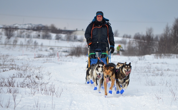 Kjetil Klokkervold henger greit med og han er kjempefornøyd. Det er kun tre av de hundene som fruen kjørte Pasvik trail med i fjor som er med i år. Resten er unge og lovende framtidshåp. – Det var nok et par som var litt slitne, sier Kjetil, men jeg tror nok at alle skal bli med videre. Nå blir det en god hvil her på Neiden.
