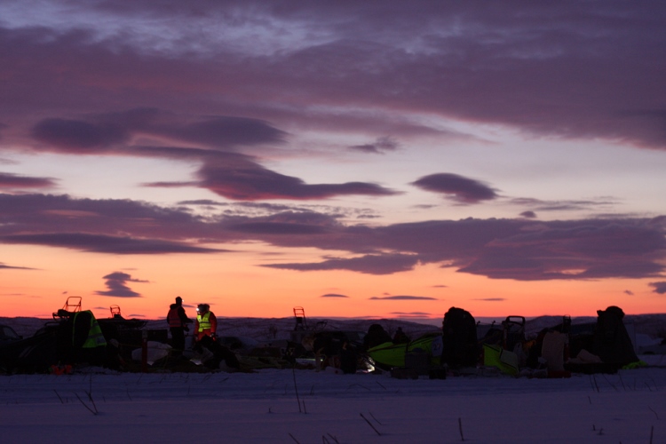Da er løpet kommet godt i gang. De siste er kjørt ut fra Masjok 1 og flere hviler på Nyborg 1. Tidsutligningen var på Masjok slik at nå er det første mann (eller dame) til mål. Hviletidspotten på 30+3 gjør det litt interessant, blant de i toppen regnes det på hvile og hvor mye andre har hvilt i forhold til hva de har igjen. Noen har som mål å ha en god gjennomkjøring før Finnmarksløpet. Til Masjok var det en god del snø, spesielt for Altaværingene som ikke har hatt mye av dette, men til Nyborgmoen ryktes det om svært gode spor.