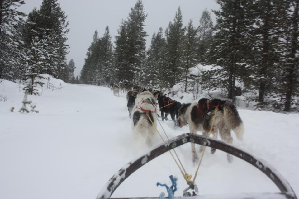 Tur til Treriksrøysa med hunder fra Kirkenes Snowhotel , her i Øvre Pasvik. Foto: Alexander Johansson