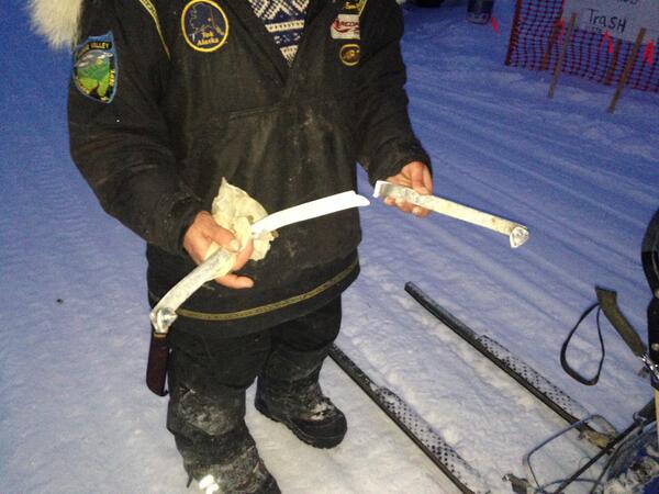 Løypa i første del av Iditarod 2014 er et helvete. – Det er ikke en eneste slede som er hel, melder Trude L. Paulsson fra Nikolai. Og de aller fleste kjørerene har fått seg minst en smell. De haltes og honkes og pleies armer og bein her nå.