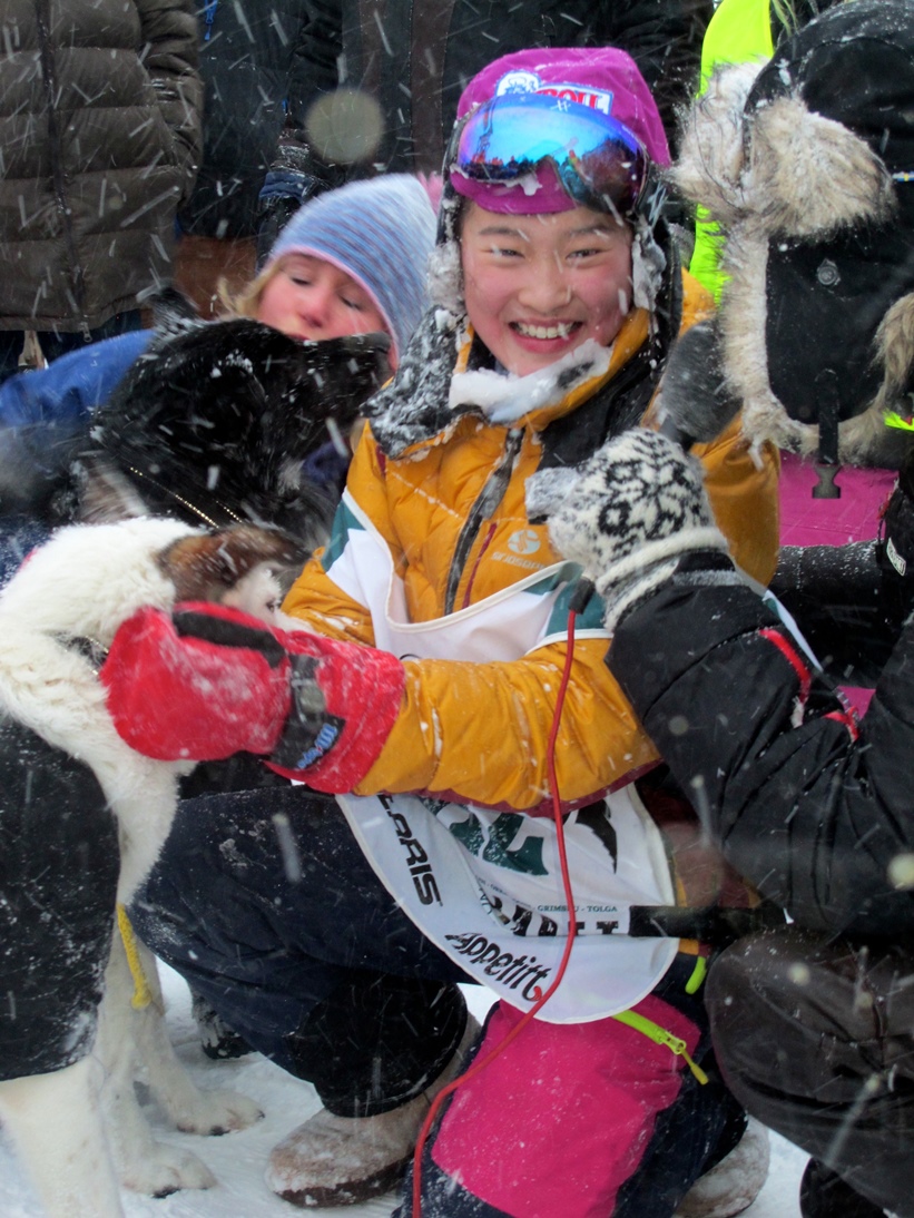 Men her og nå må vi ut og ta imot Junior-Norgesmesteren: Strålende glade, dyktige Ella har trosset storm og uvær og null sikt og stødig tråkla seg til mål. ”Takk Kasper, takk Håp! Jeg kunne ikke se lederhundene engang,” sier hun, men hun var aldri i tvil om at de skulle finne stikkene og veien til mål. Ella går i hundegården før hun går på skolen om morgenen, og gjerne når hun kommer heim etter skolen også. Hun turner, og er sikker på at det kom godt med nå, der hun har baksa seg opp endeløse bakker over ville Rørosfjell.
