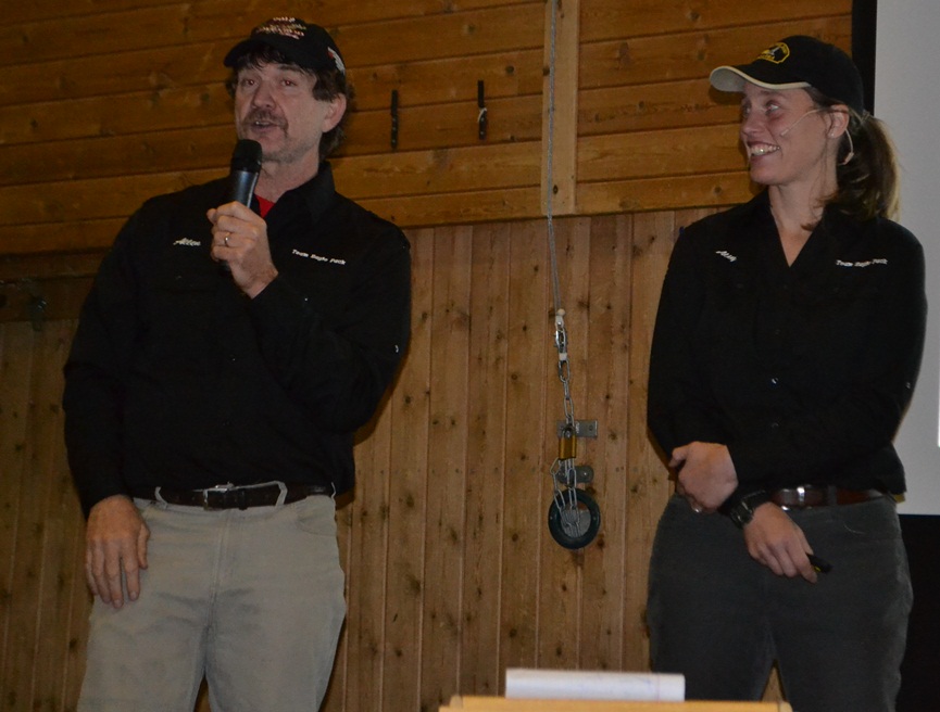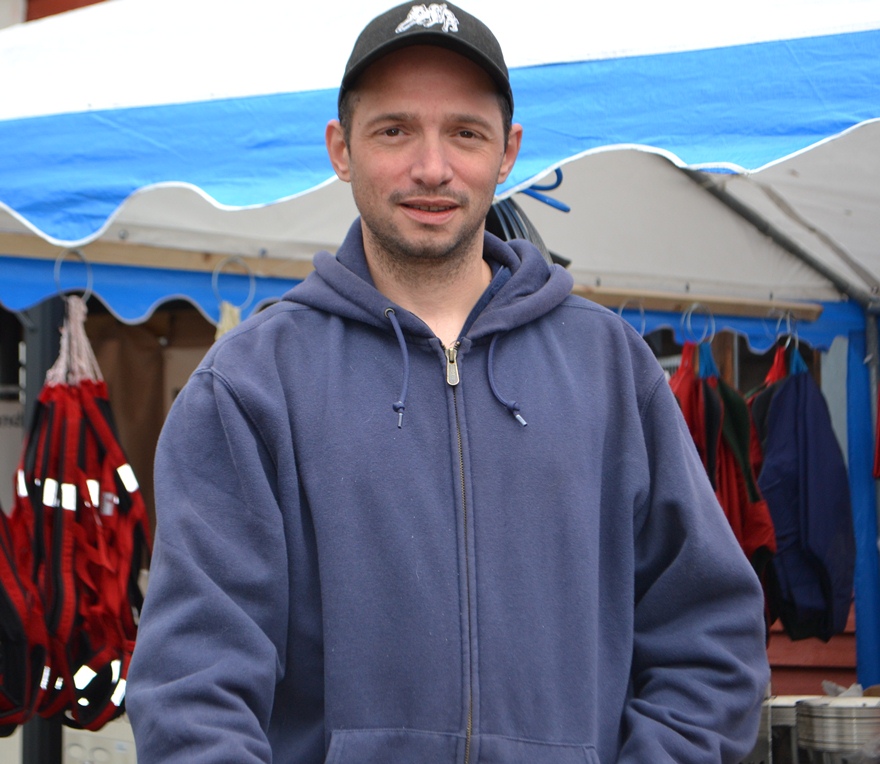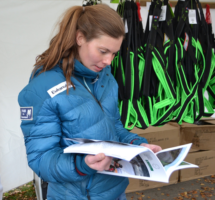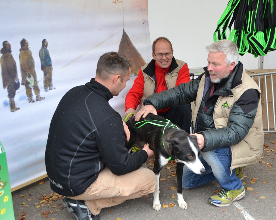 Petter Ringerike demonstrerer sele for Bjørnar Andersen ,med Jan-Erik Baarli
