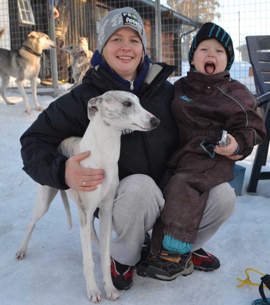 Og hva er greia med alle disse whippetene/borzoien, spør jeg litt forsiktig. – Jeg har alltid hatt innehunder, sier Birgitte. Mine nordisk-hunder bodde jo inne. Jeg må ha noen som kan varme tærne mine etter kalde timer på sleden. Jaja. Når hun først har dem, kan hun like gjerne avle litt også.