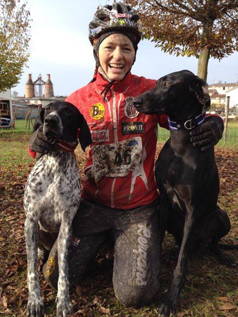 Lena med Pulka og Gullgutten etter VM-seier i “2-dog scooter” i Italia i høst.