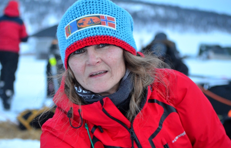 Berit Astrid Utsi har hatt en god etappe fra Kirkenes til Vaggetem og er godt fornøyd med tida 5.08.
