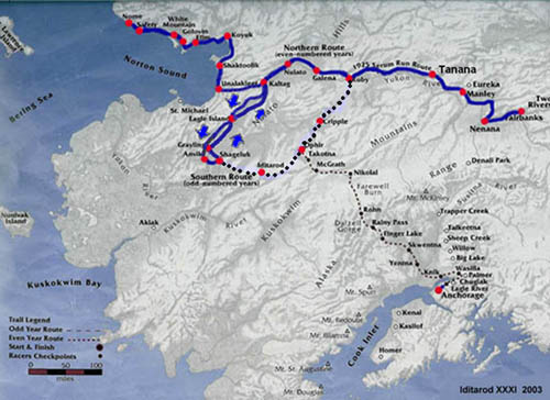 Nå rasler ITC med- ikke akkurat sablene – men med nye kart og nye veier. Det er kjent for mange som kikker litt over dammen at vinteren har i stor grad vært veldig fraværende i flere deler av Alaska. Varmt, vått og isete. Kjipe forhold for de som skal arrangere verdens lengste sledehundløp. Årets løp skal i utgangspunktet gå langs nordlig rute.