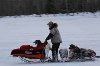 Og til dere som vurderer å skylde på hund i sleden når farta går ned; Jeff kjører med 2 hunder i sleden store deler av løpet. For å spare på kreftene så lenge som mulig.