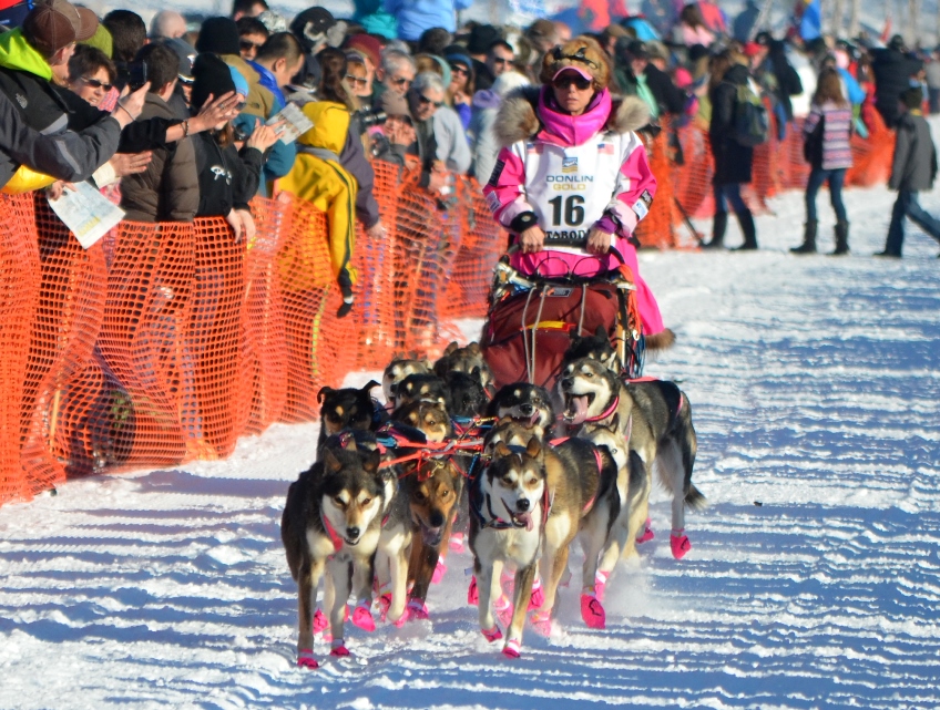 DeeDee Jonrowe var en av de som uttrykte størst motstand da avgjørelsen om ikke å flytte restarten til Fairbanks ble tatt. Og hun så passe mellomfornøyd ut både på showstart og restart. Jeg kan forstå henne.
