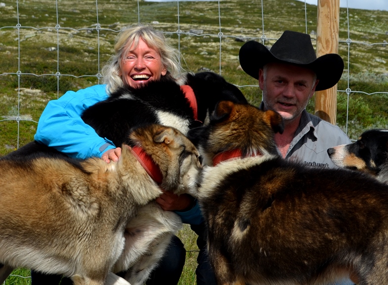 Inger Marie Haaland med samboer Arvid Mæland og noen av de firbeinte